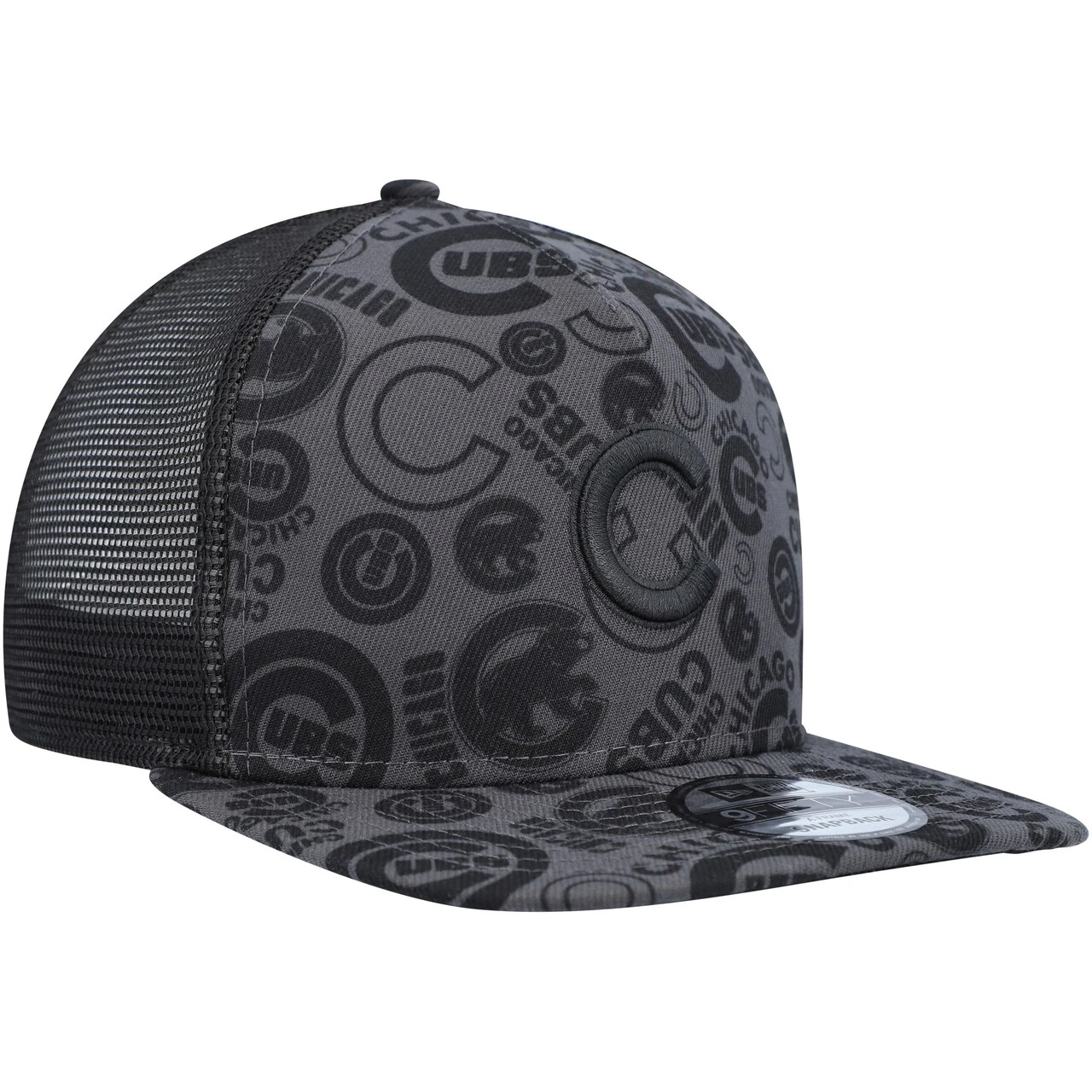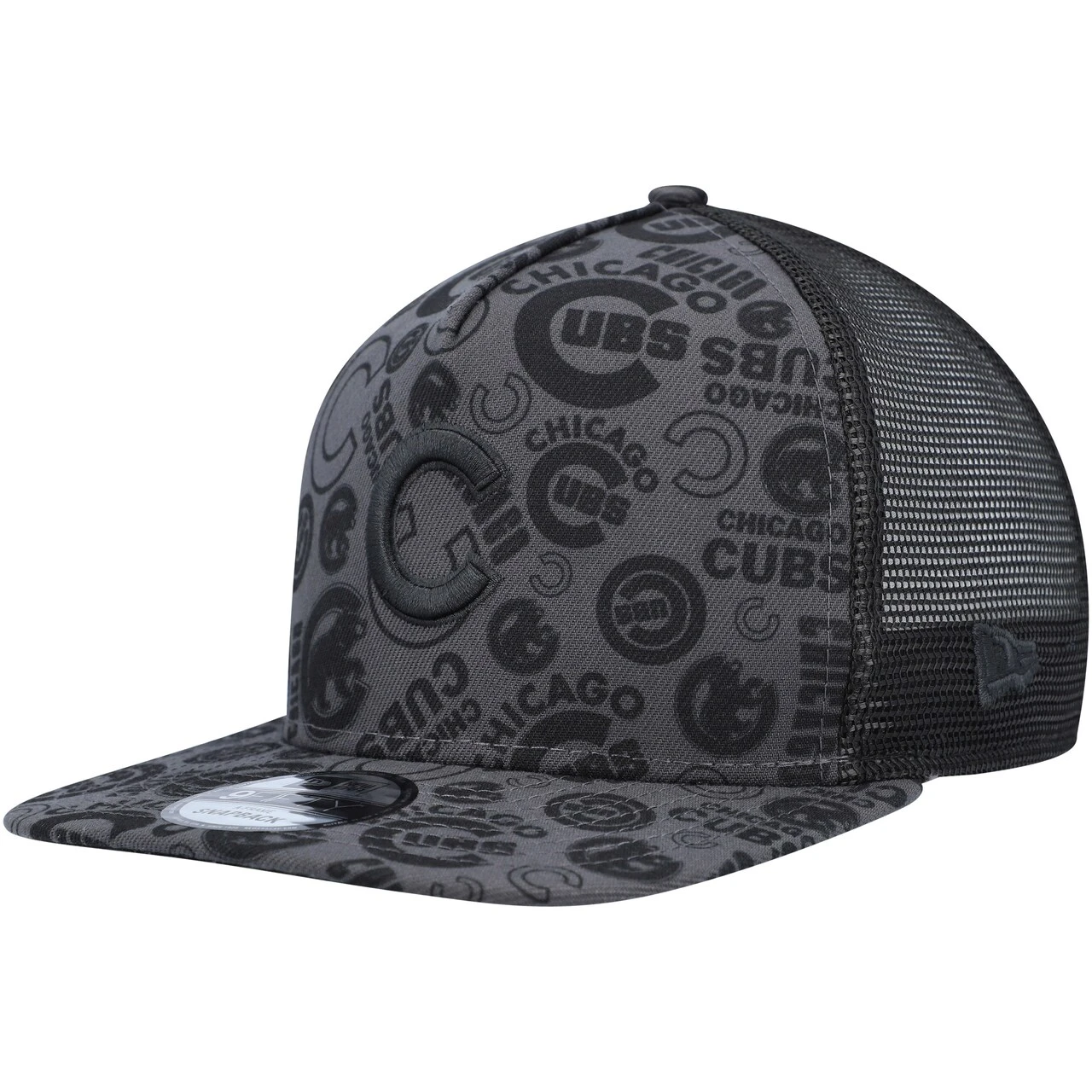 Men’s Chicago Cubs New Era Black Repeat A-Frame 9FIFTY Trucker Snapback Hat