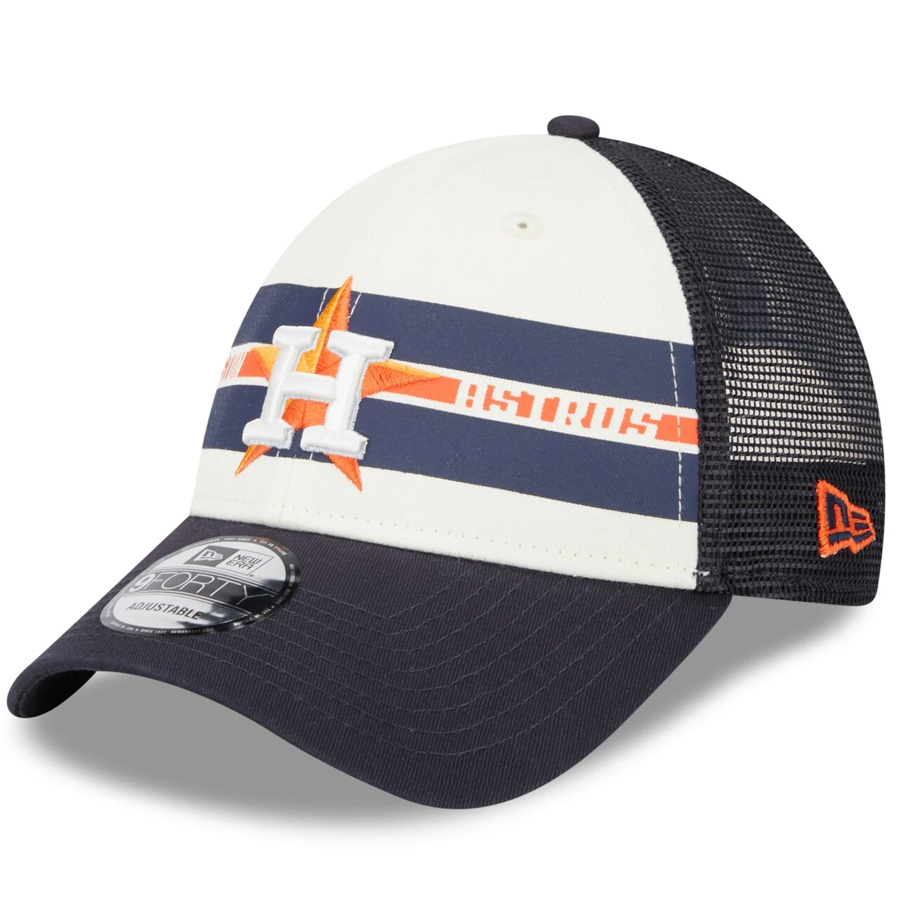 Men’s Houston Astros New Era White/Navy Team Stripe Trucker 9FORTY Snapback Hat